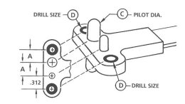 Screw Size: 1/4", "A" Spacing: .344, "C" Pilot Diameter: .248, "D" Drill Size: #40