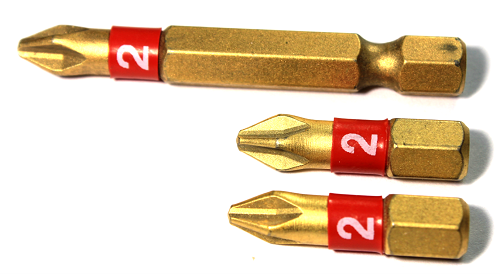 2 ea. WE134941 (#2 Phillips® x 1" Insert Bit) 1 ea. WE134951 (#2 Phillips® x 2" Power Bit) Size band clearly indicates tip size so you can select the correct bit without a second thought. If you bought these three pieces individually, you would pay $13.94, take advantage of this discounted sample pack and pay only $9.95. Customers who try these bits, LOVE THEM, and we are confident that you will also.