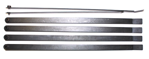 Save $6.80 by purchasing this five piece kit! Also known as "Strap Duplicators". Used to locate "hidden" holes. Includes one each of #40, #30, #21, #10, and 1/4" standard bushing hole finders - (13-1/2" length) Part # ELHFSET 5 Pc Standard Long Hole Finder Kit
