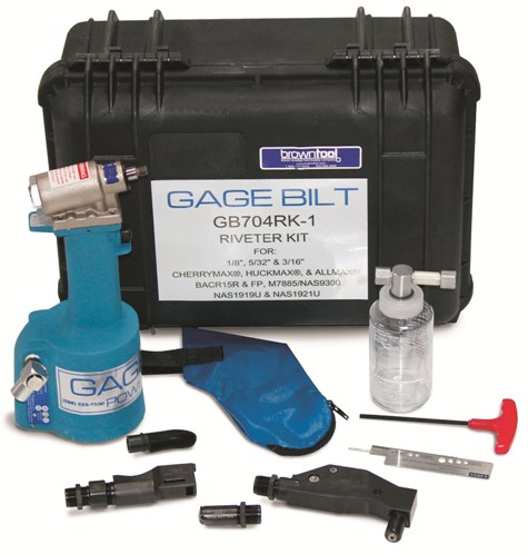 This deluxe and comprehensive kit contains everything you need to install CherryMAX® style fasteners in just about any situation. With the three included nose pieces (straight, offset, and right angle), you can install 1/8", 5/32", or 3/16" CherryMAX® rivets with ease! Gage Bilt has well over 50 years experience manufacturing blind rivet tools and their quality and workmanship are superb - you will find Gage Bilt brand tools in just about every major aircraft repair station and factory in the world. The pulling heads included in this kit can also be used on genuine Cherry brand tool model G704 and vice-versa with no adapters needed. Made in the USA! Kit Includes: - GB704 PowerMAX Riveter - 456MAX-701-17 Straight Pulling Head - 456MAX-704-43OS Offset Pulling Head - 456MAX-753A-54 Right Angle (90°) Pulling Head - GBP704153 Air Bleeder Bottle - Grip Gage with Slide Rule - Pintail Deflector & Zippered Stem Catcher Bag - Heavy Duty Pelican Fitted Storage Case Model GB704RK-1 Deluxe Installation Kit with Three Pulling Heads CherryMAX® is a registered trademark of TEXTRON Aerospace Fasteners and is used for reference only. Brown Aviation Tool is not affiliated, licensed, or sponsored in any way by TEXTRON Aerospace Fasteners.